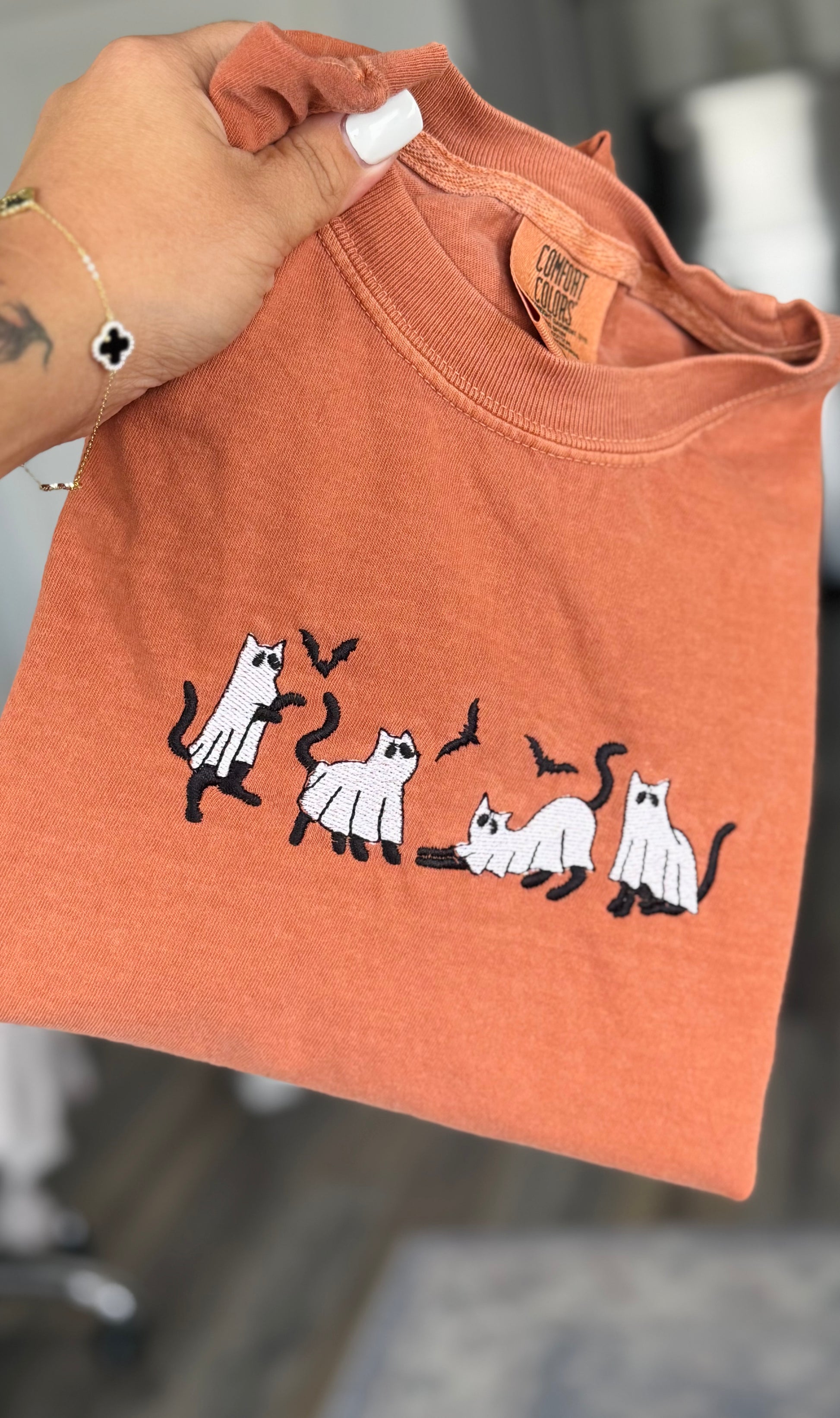 Embroidered Ghost Cat Shirt